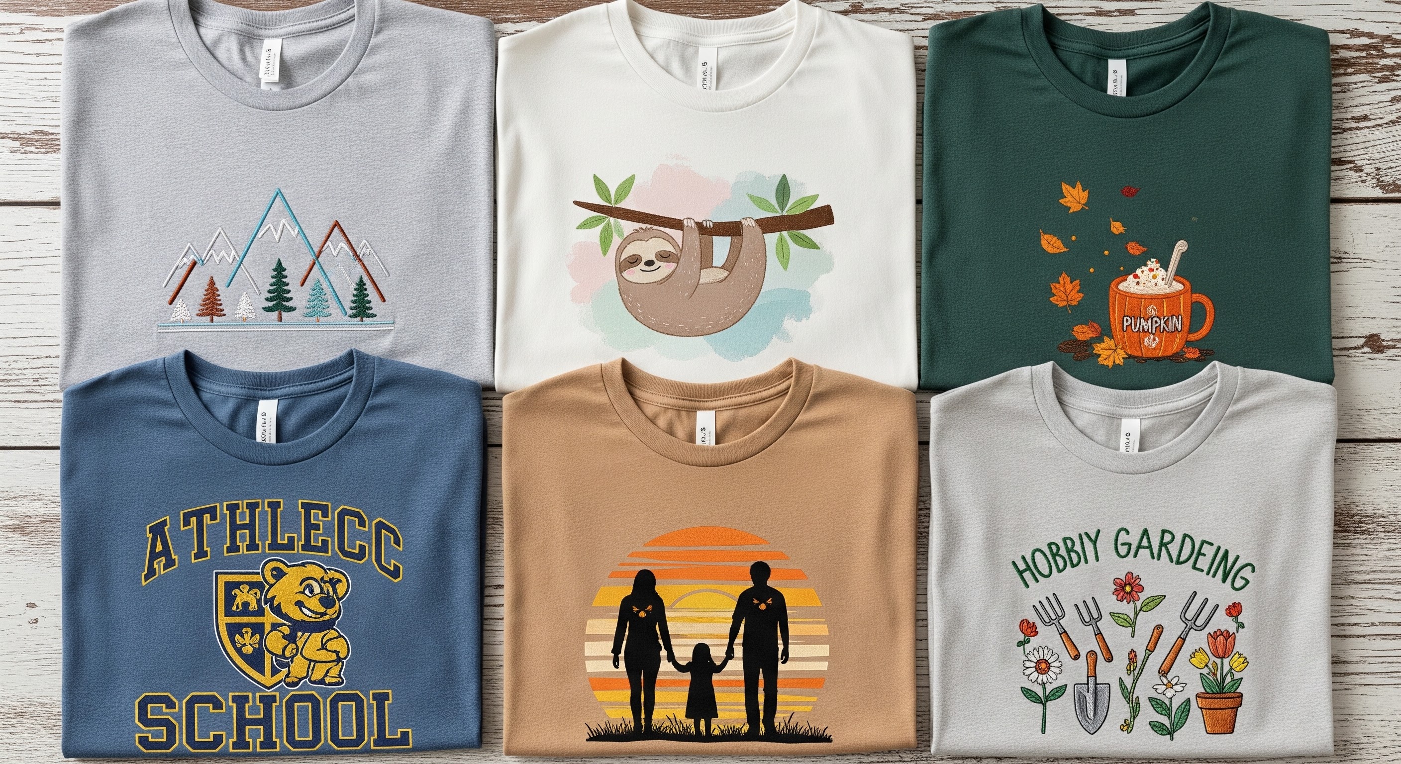 The guide brings together 56 ideas across categories including cool and cute designs, embroidered styles, school and sports themes, seasonal graphics, family-focused concepts, and hobby-led apparel.