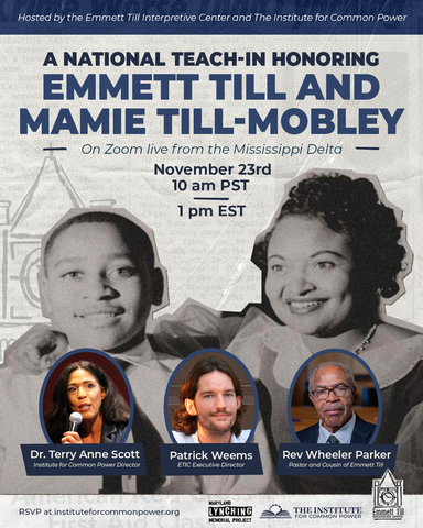 (PRLeap.com) Money, MS- On Sunday, November 23, 2025, the Institute for Common Power and the Emmett Till Interpretive Center, in conjunction with the Maryland Lynching Memorial Project, will host a four-hour virtual Teach-In...