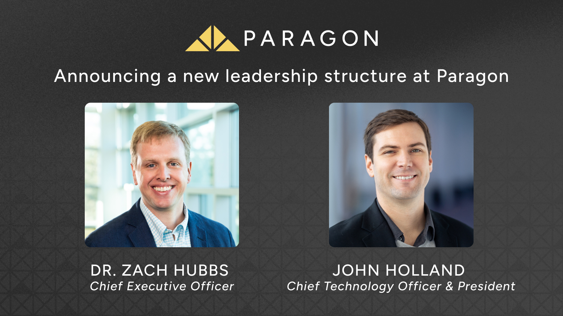CHATTANOOGA, TN, UNITED STATES, April 16, 2026 /EINPresswire.com/ — Paragon, a cloud-based platform for designing and manufacturing structural building components, has announced a leadership transition as the company enters its next phase of growth. Dr. Zach Hubbs has been appointed Chief Executive Officer, and founder John Holland will transition into the role of Chief Technology Officer and President.